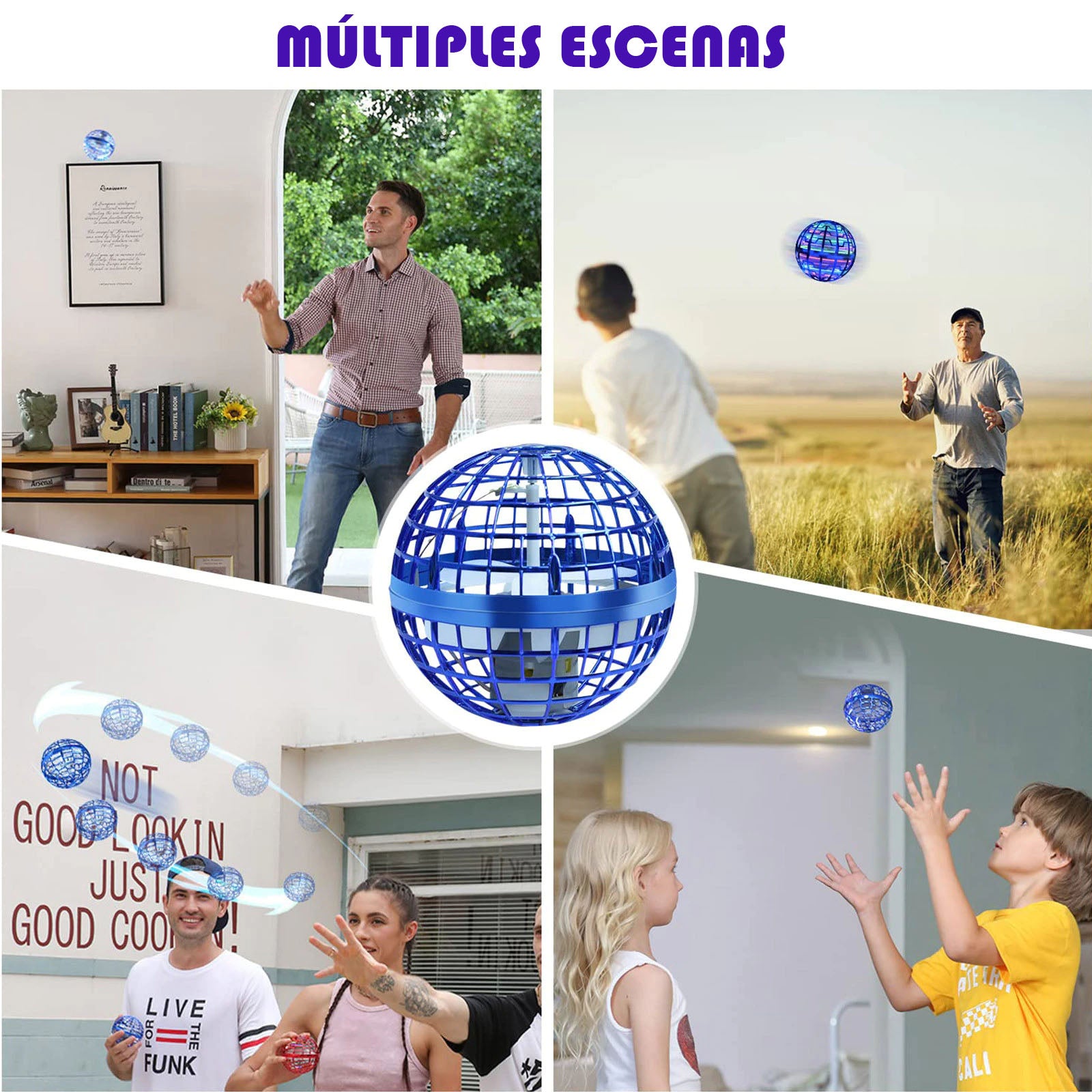 El material es suave y ligero, el diseño esférico y la carcasa protectora significa que es completamente seguro de agarrar con las manos. Placer sin fin y múltiples beneficios, puedes jugar con la ESFERA VOLADORA en interiores y exteriores. Es un gran juguete para fiestas y actividades.